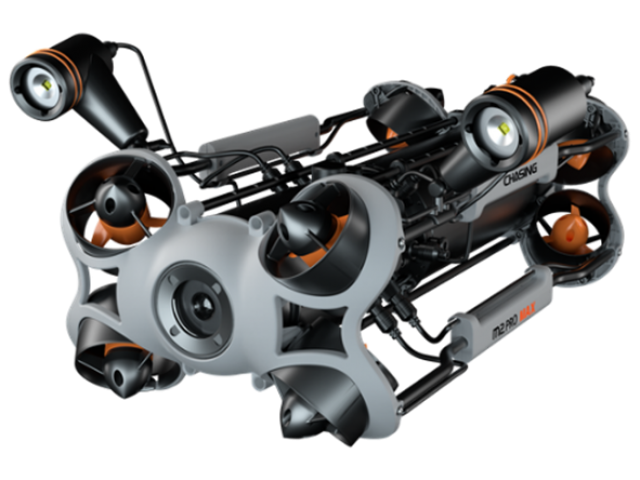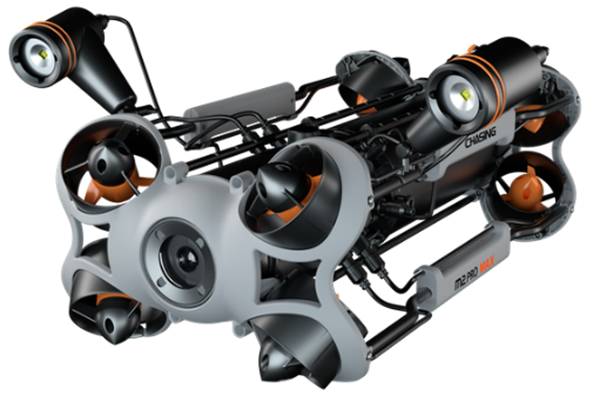 CHASING M2 PRO MAX is an industrial-grade underwater remote operated vehicle (ROV) designed for government and enterprise users. Can be equipped with optional accessories such as sonar, USBL, water sampler, grabber arm and many more. Quick assembly and disassembly technology, shore-based power supply system and external floodlights to provide easy-to-use, fully professional and reliable underwater solution for various industrial applications e.g. underwater emergency rescue, inspections of various installations e.g. hull and dock, aquaculture, hydropower and offshore wind power facility as well as scientific exploration, water conservancy etc.