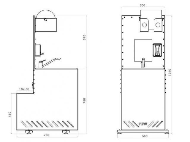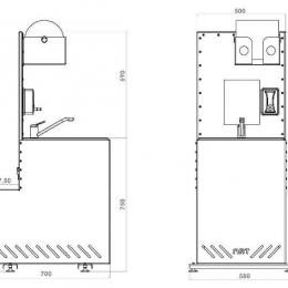 Power supply 5000 W 1f-230V Water flow ca. 2 l/min Water heating 35-40 OC Water supply pressure 2-6 bar Waste water pump efficiency 130 l/min Waste water pumping distance min 20 m Dimensions (W x D x H) 580 x 700 x 1350 mm Weight 35 kg