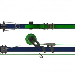 Integrated fastening belt with hooks allows to fix the strut in any possible configuration for proper stabilisation of objects of various shapes and sizes.