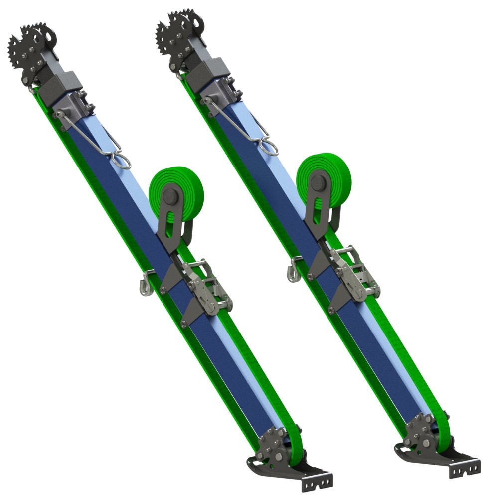 1100 mm to 1850 mm Max. load 1500 kg per strut Safety Factor 1 : 5 Belt Lenght 5 m Weight 9,0 kg “Slide-Stop” Baseoperational angle 170 st. Head operational angle 90 st.