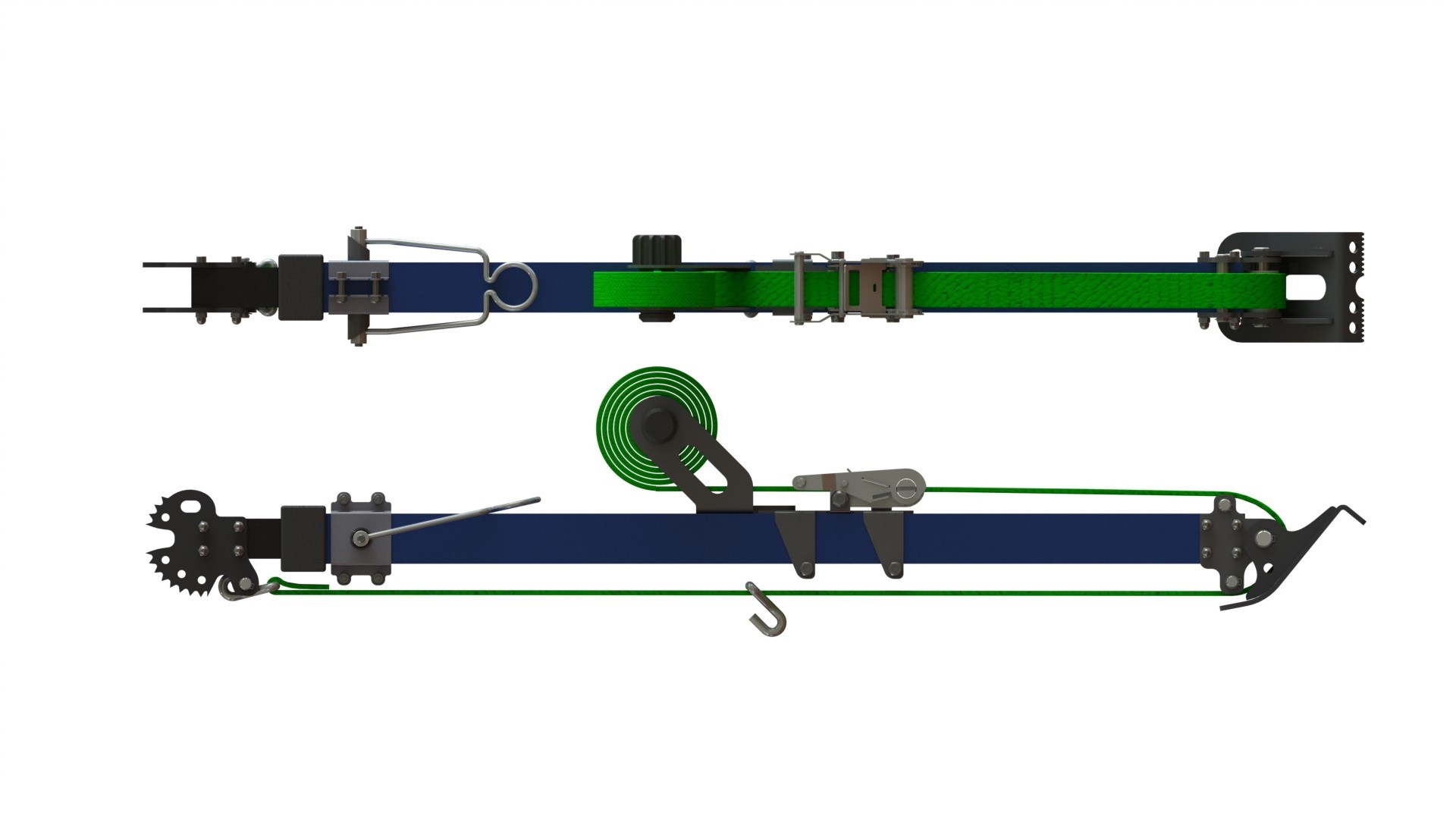 Integrated fastening belt with hooks allows to fix the strut in any possible configuration for proper stabilisation of objects of various shapes and sizes.