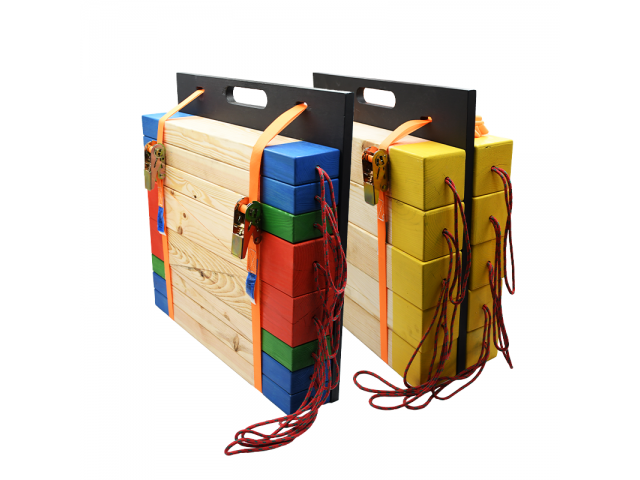- Number of items and dimensions (WxDxL):10 × blocks: 100 × 100 mm x 600 mm4 × blocks: 100 × 50 mm x 600 mm4 × wedges: 100 × 100 mm x 500 mm, flat section: 100 mm long4 × wedges:100 × 50 mm x 500 mm, flat section: 100 mm long2 × plywood board: 600 x 21 × 600 mm